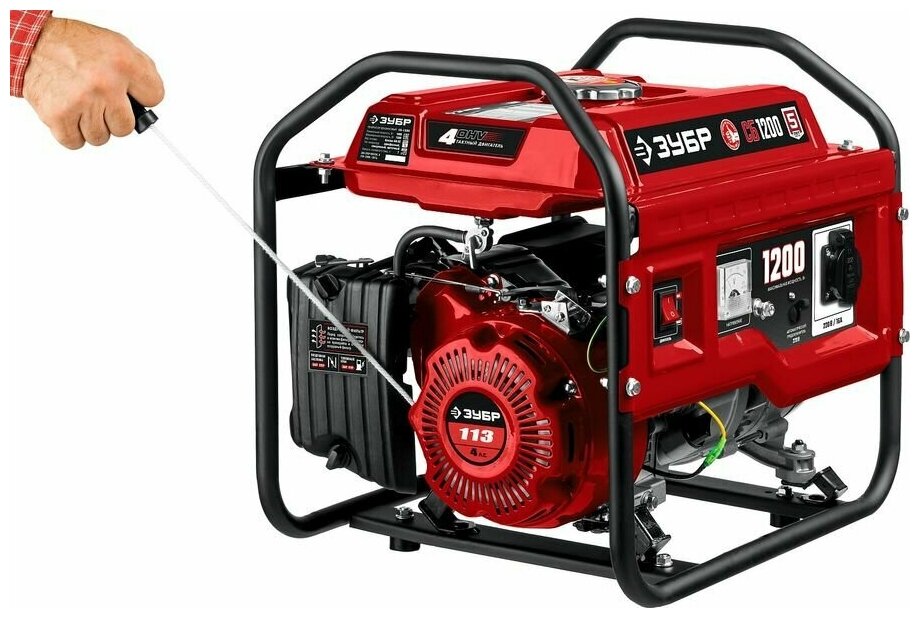 Генератор бензиновый Зубр Сб-1200, 4Т, 4 л.с., 1.2 кВт, выход 220 В, ручной стартер, 27 кг Зубр 7797