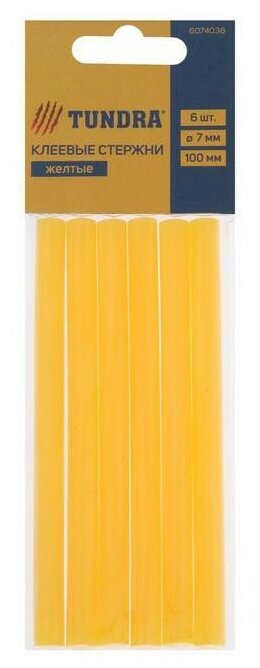 Купить Клеевые стержни тундра, 7 х 100 мм, желтые, 6 шт.. В наборе 1шт.