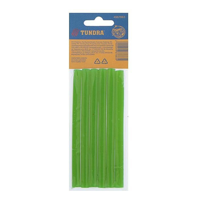 Клеевые стержни тундра, 7 х 100 мм, зеленые, 6 шт., TUNDRA