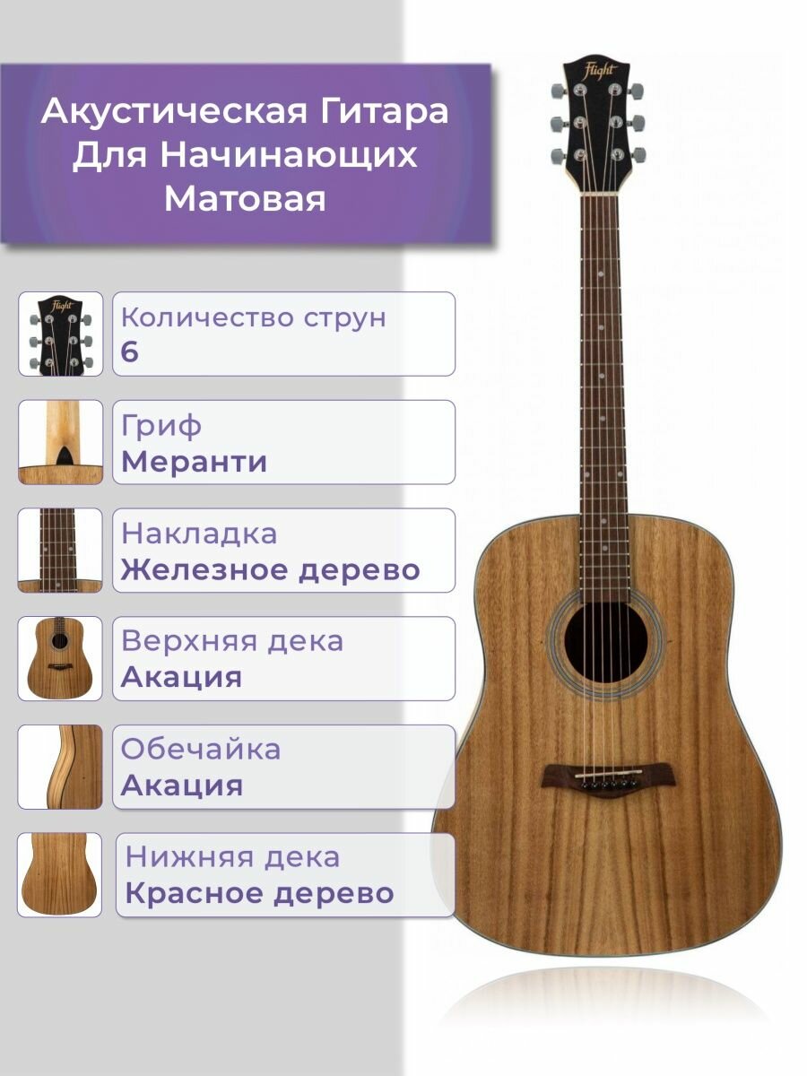FLIGHT D-175 AC акустическая гитара, верхн. дека-акация, корпус-акация, цвет натурал интересное: