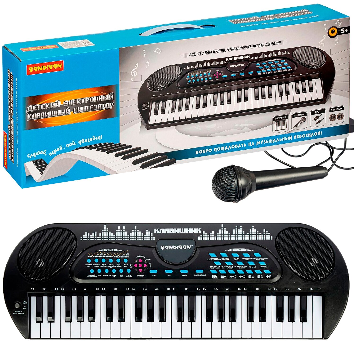 Синтезатор BONDIBON ВВ4948 клавишник с микрофоном и USB-шнуром, 49 электронных клавиш, стереозвук