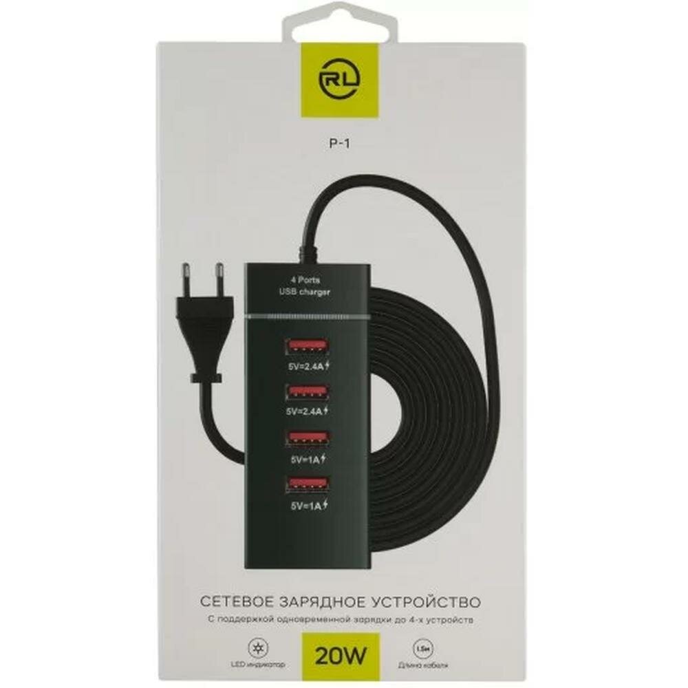 Купить Сетевое зарядное устройство Red Line P-1, 4xUSB, Black