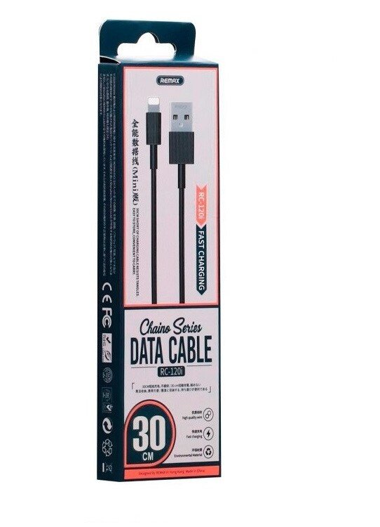 Кабель USB REMAX RC-120i Chaino Mini, USB - Lightning, 3A, 30 см, черный интересное: