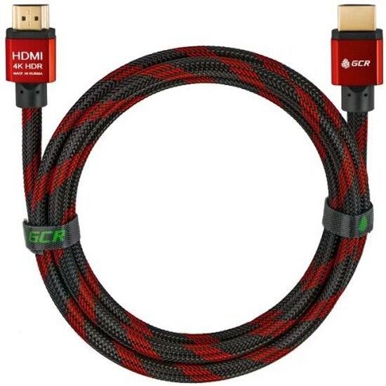 HDMI провод 2м GCR Ultra HD 4K 3D 18 Гбит/с частично нейлон для PS3, PS4 черно-красный 24К GOLD