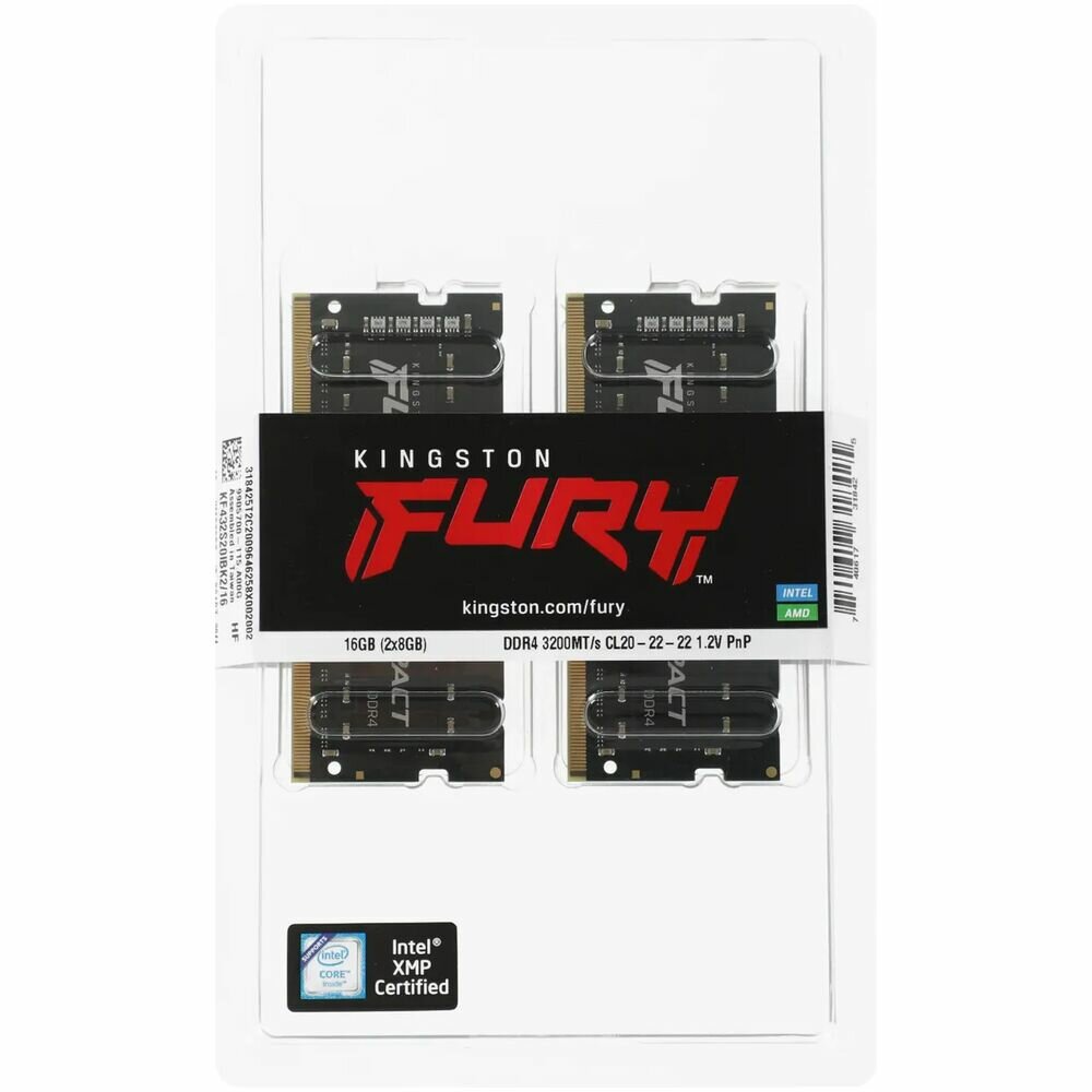 Память DDR4 8Gb 3200MHz Kingston KF432S20IBK2/16 Fury Impact RTL PC4-25600 CL20 SO-DIMM 260-pin 1.2В