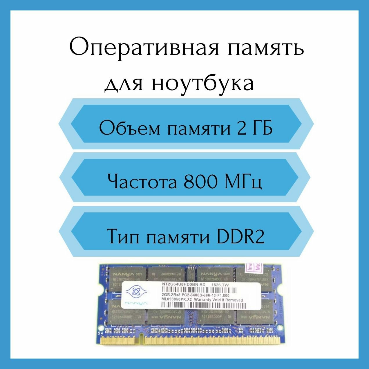Оперативная память Nanya 2GB DDR2 800MHz PC2-6400S SO-DIMM NT2GT64U8HD0BN-AD