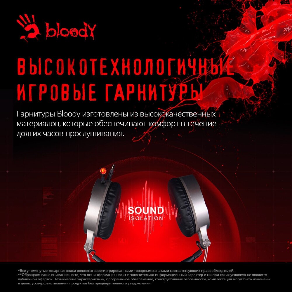 СохранитьНаушники с микрофоном A4Tech Bloody G530 черный/серый 1.8м мониторные оголовье (G530 (GREY) USB) интересное: