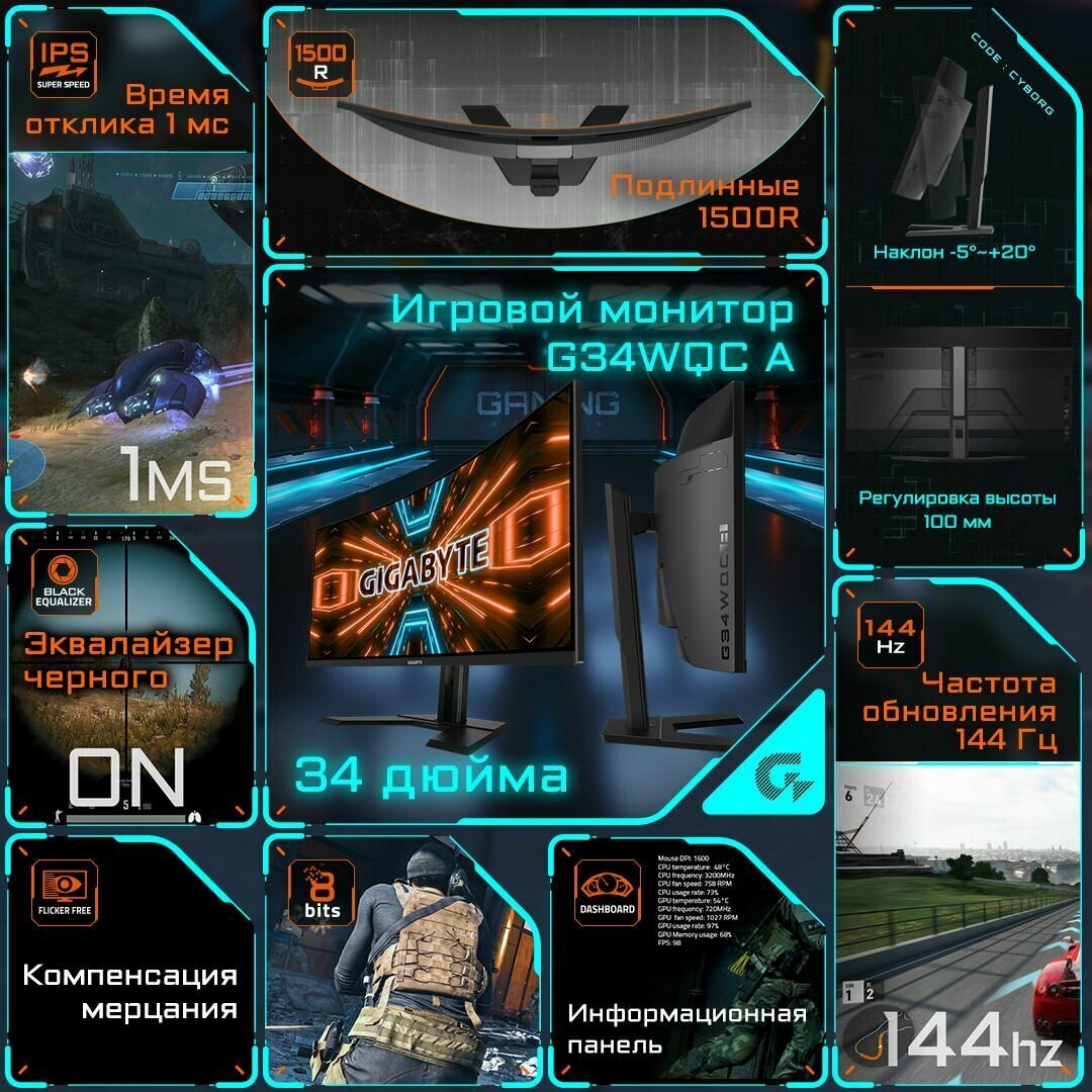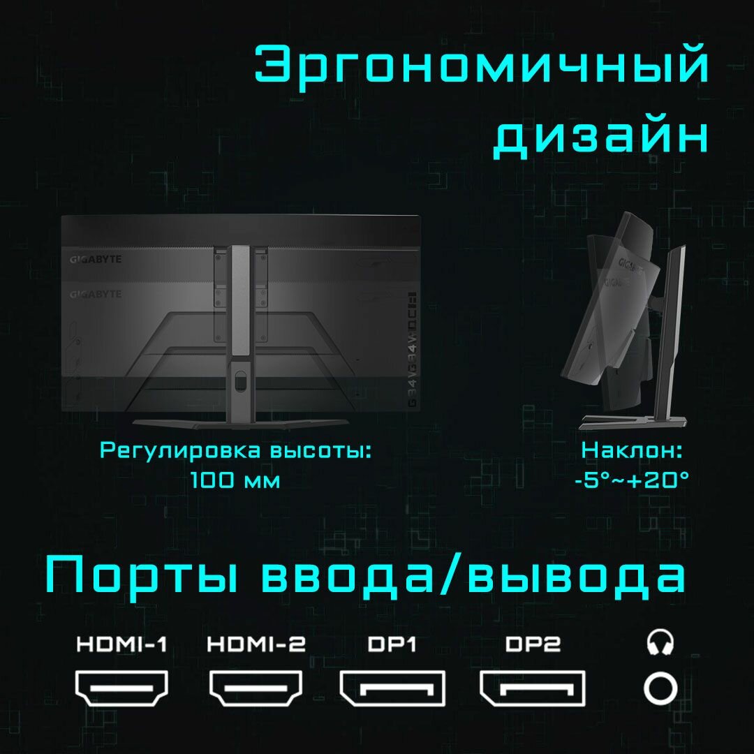 Монитор GIGABYTE 34" G34WQC A VA, черный (20VM0-G34WQCABI-1EKR)