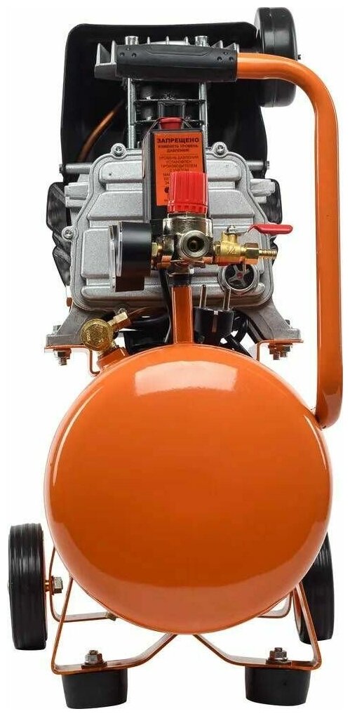 | Плюсы: | Компактный и мощный, имеет ручки и колеса для транспортировки, два монометра, два выхода. В комплекте масло |