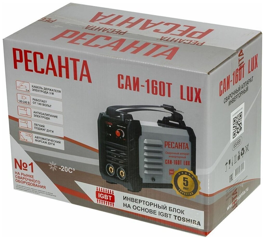 Сварочный аппарат инверторный Ресанта САИ-160Т LUX , 160 ампер , комплект кабелей