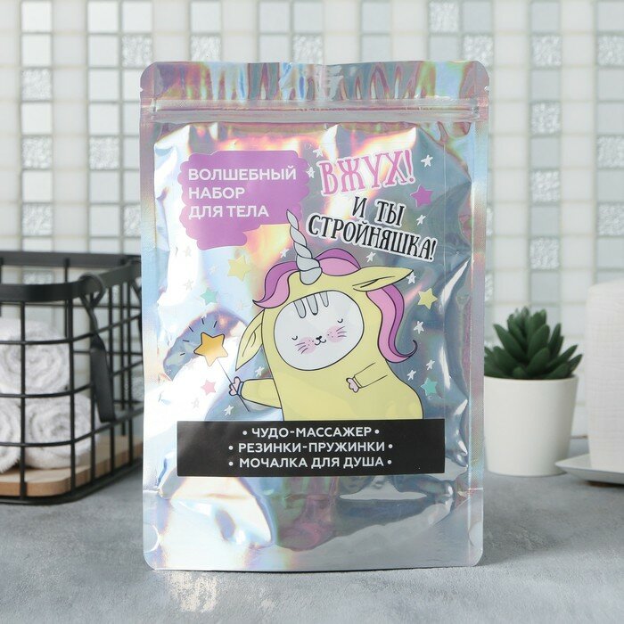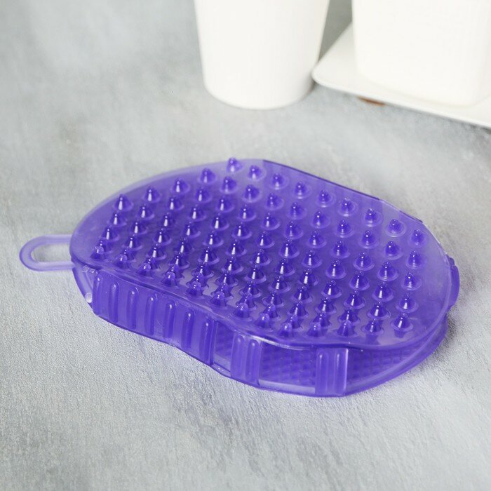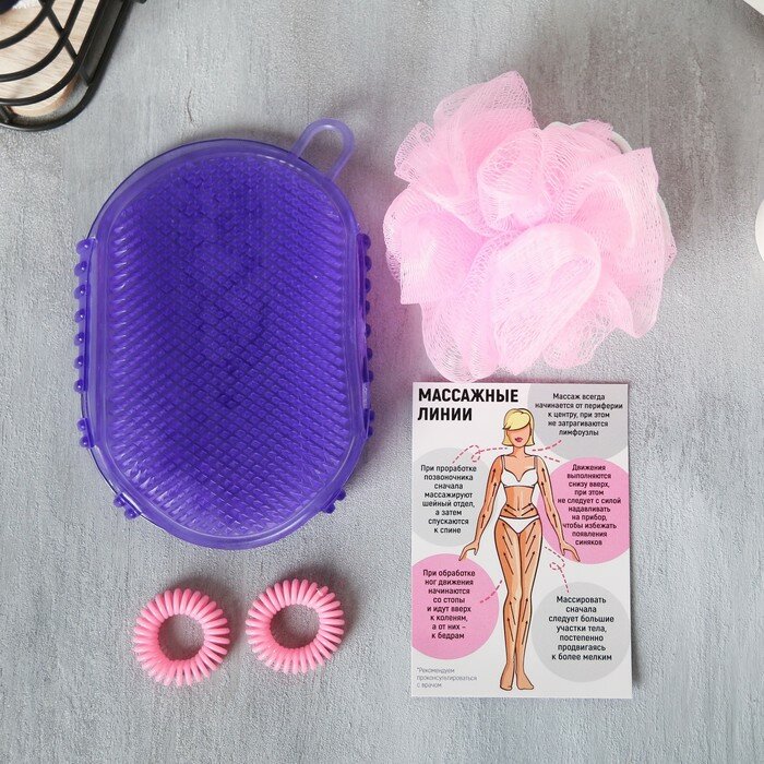 Набор: массажёр антицеллюлитный, резинки (2 шт.) и губка для тела «Волшебный», фиолетовый, 15 х 10,5 см интересное: