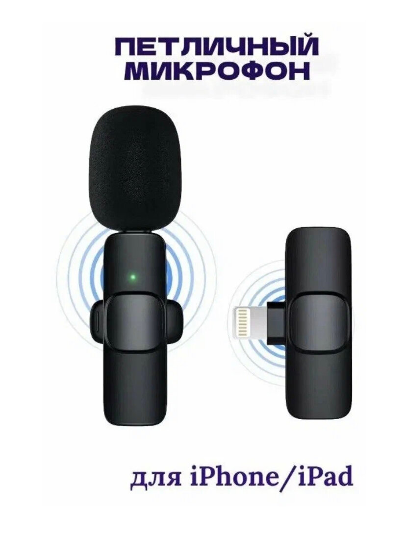 Микрофон петличный беспроводной, с шумоподавлением, петличка, для мобильного телефона, разъем Lightning, для Iphone, черный, 2шт