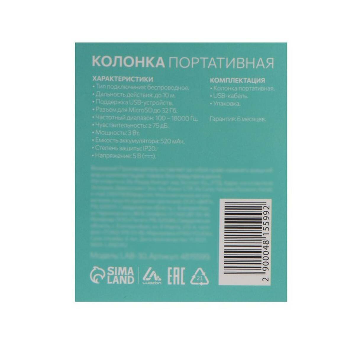 Портативная колонка LuazON LAB-30, 3 Вт, 520 мАч, microSD, цвет: черный мрамор интересное: