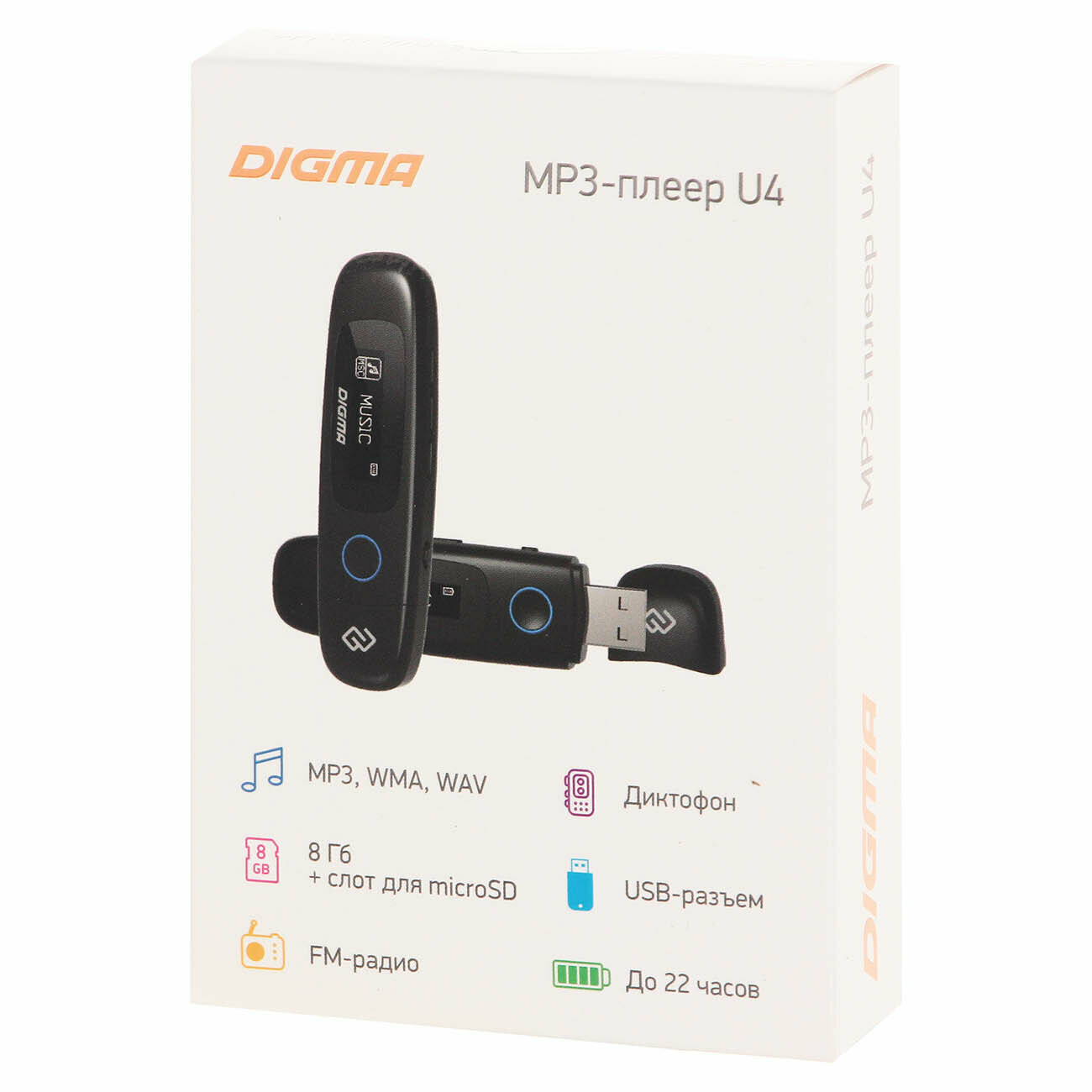 Плеер MP3 Flash Digma U4 8Gb черный/0.91/FM/microSDHC