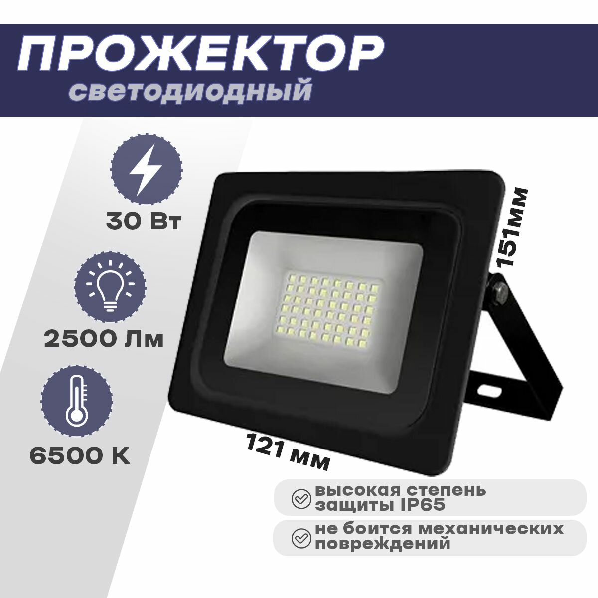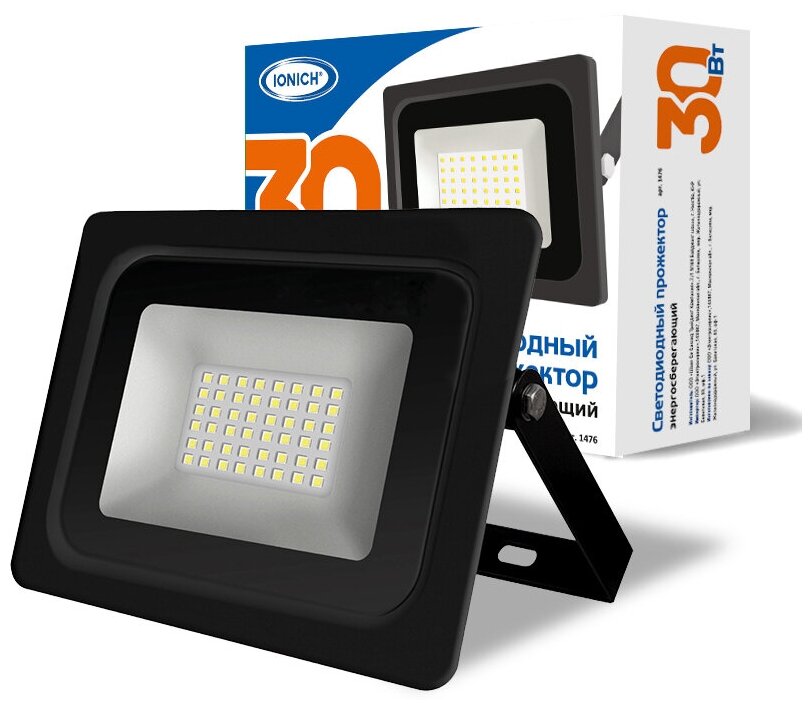 Прожектор светодиодный ТМ IONICH IFLSLED-DOB- 30-865-BL-IP65 интересное: