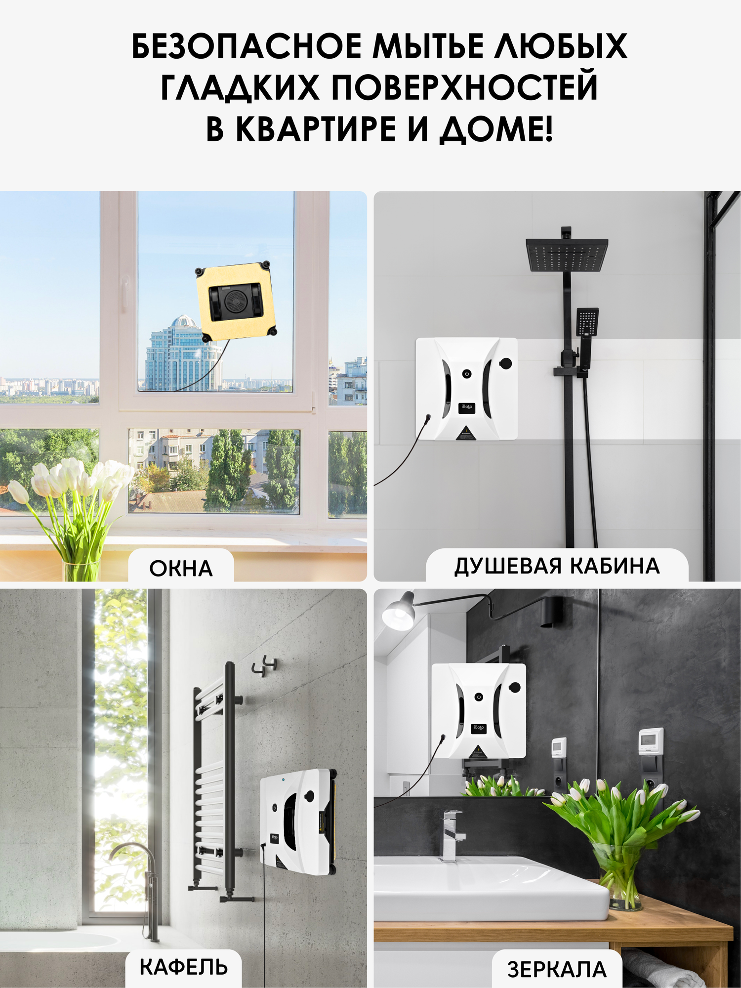 | Отзыв: | Быстро и хорошо моет стекла, плитку в ванной. Нет необходимости следить за работой, сообщает о завершении звуковым сигналом. Управление с пульта или смартфона (когда нужно его подвинуть куда-то, чтобы было удобнее достать).