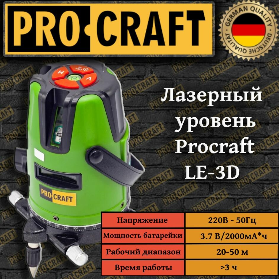 Лазерный уровень, нивелир Procraft LE-3D, 3 линии луча, +/-0,5мм/м, дальность 15м интересное: