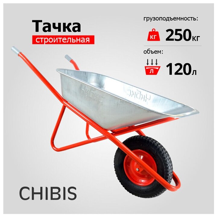 Тачка строительная 'чибис' 120л/250кг усиленная (1 пневмокол 4.00-8 оц кузов 0,8 мм неразб рама) 6418-1 интересное: