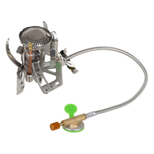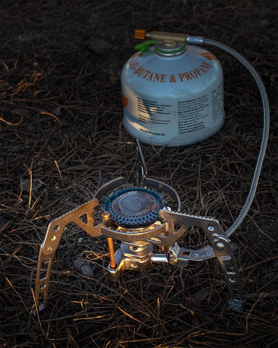 Туристическая газовая горелка с пьезоподжигом с подогревом газа газогенератором, горелка перевертыш