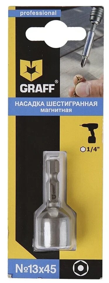 Graff Насадка магнитная для шуруповерта бита для кровельных саморезов 13x45 мм 321345 .