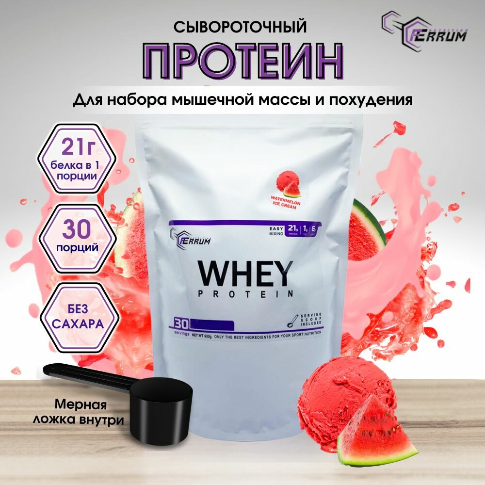 Купить Протеин Whey Protein от Ferrum Nutrition/ Сывороточный протеин / Протеиновый коктейль для похудения / вкус: арбузное мороженое. 900 грамм, 30 порций.