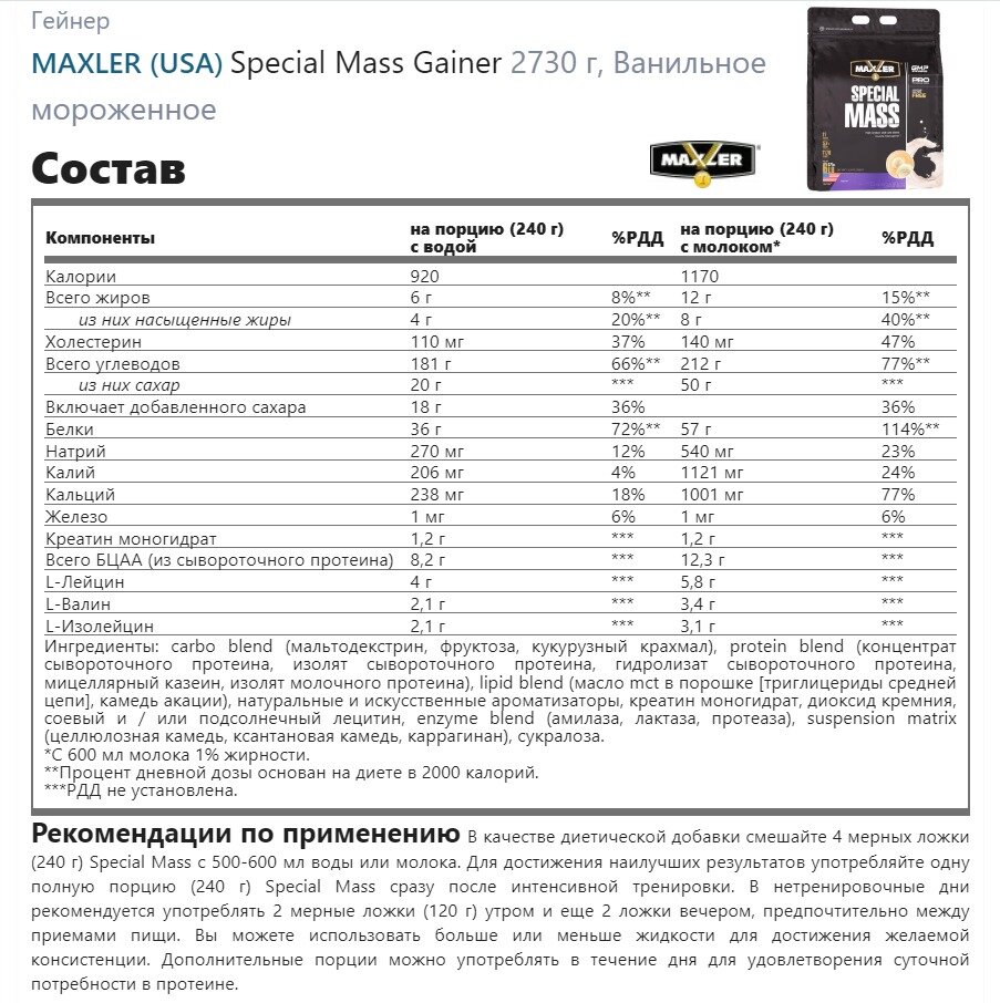 Special Mass Gainer 2730 gr, 11 порции(й), ванильное мороженое