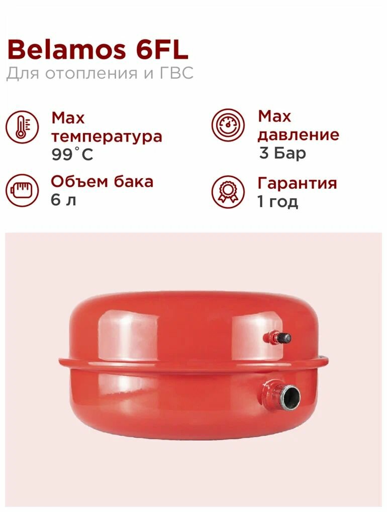 СохранитьBELAMOS Расширительный бак экспанзомат Belamos 6FL красный, плоский 6 литров беламос интересное: