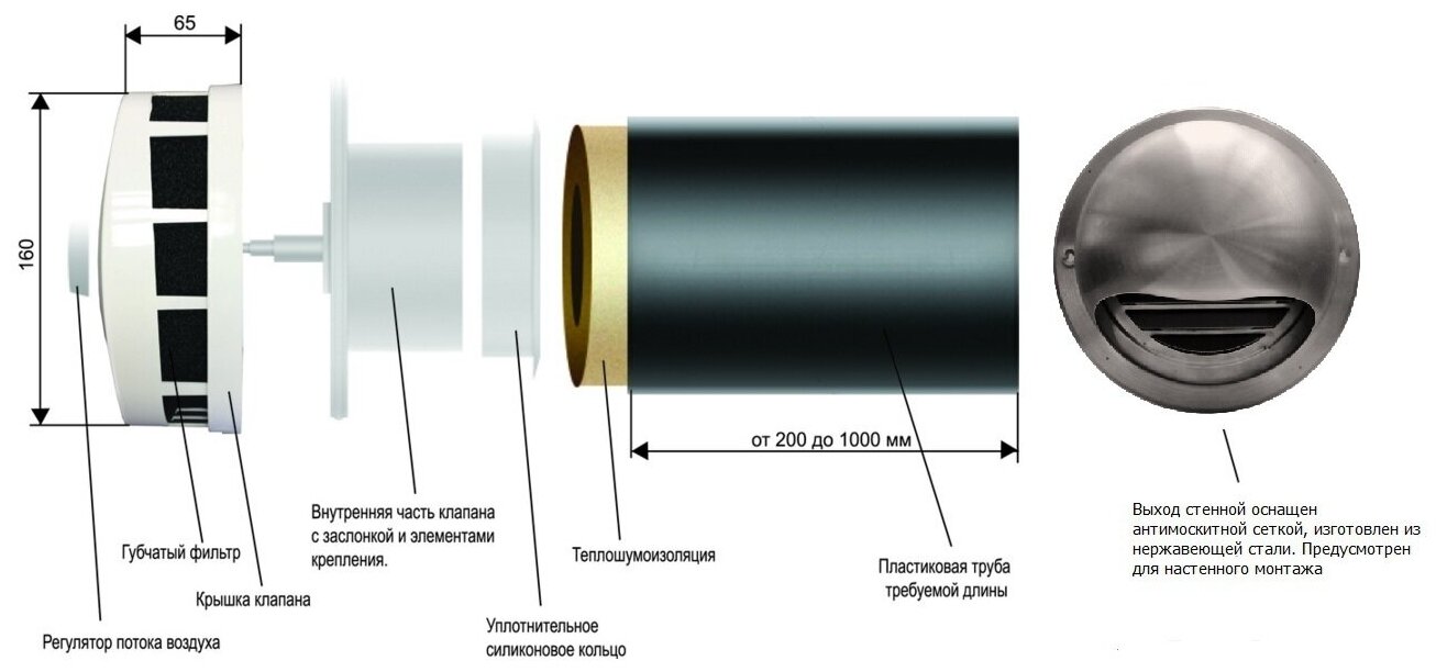 Клапан Инфильтрации Воздуха Airone КИВ 125 0.5м с выходом стенным из нержавеющей стали. интересное: