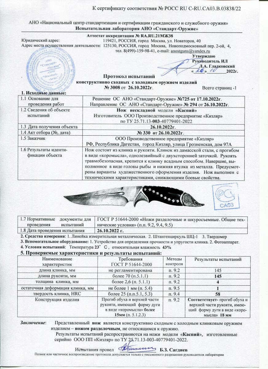 Нож Кизляр Каспий D-2 095731 интересное: