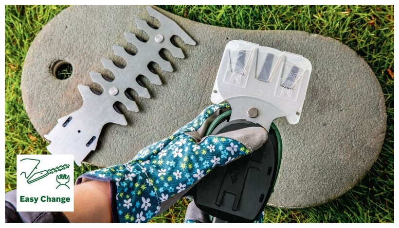 | Плюсы: | удобная зарядка, хорошо срезает лист и мелкие ветки |