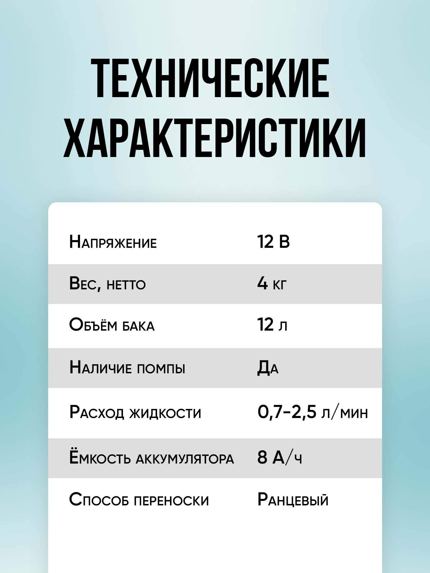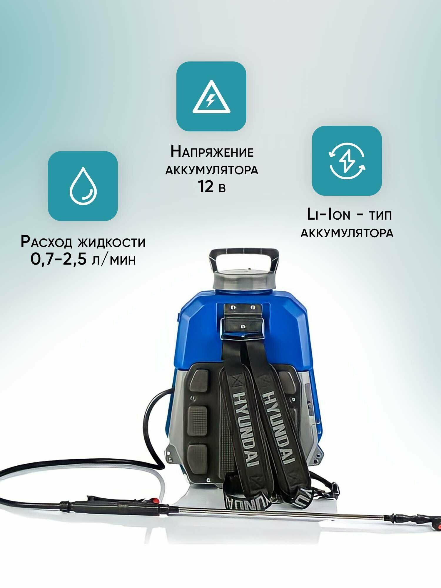 Опрыскиватель садовый аккумуляторный HYUNDAI HYSL 1212 (бак 12 л, до 2.5 л/мин, автономная работа до 6 часов) для цветов, растений, сада, огорода