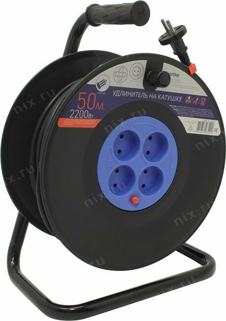 Удлинитель силовой SmartBuy SBE-10-4-50-N, 4 гнз - 50м, на катушке, б/з интересное: