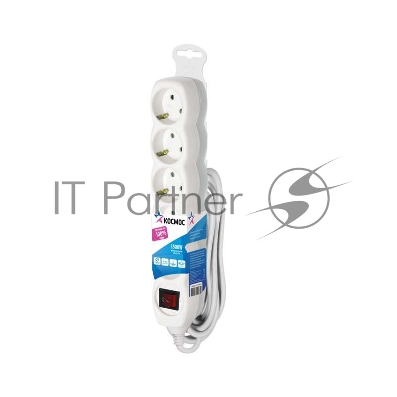 Космос Удлинитель 5х3м с заземл. 16А IP20 ПВС 3х1 с выкл. Космос YKsm3m-5g-Z-V(K)