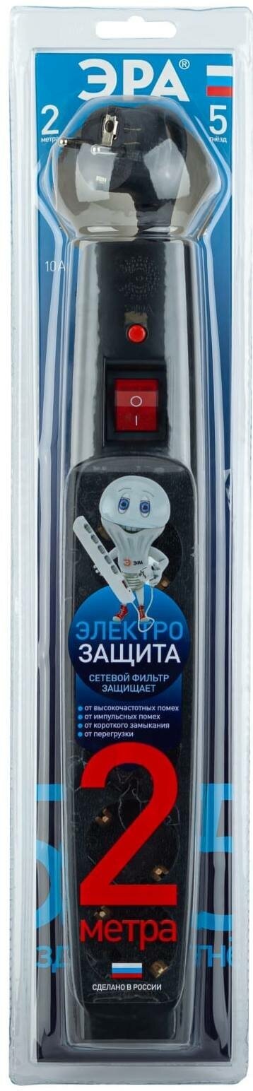 Сетевой фильтр SFX-5es-4m-B ЭРА (черный) с заземл, 10A, с выкл, 5гн, 4м интересное:
