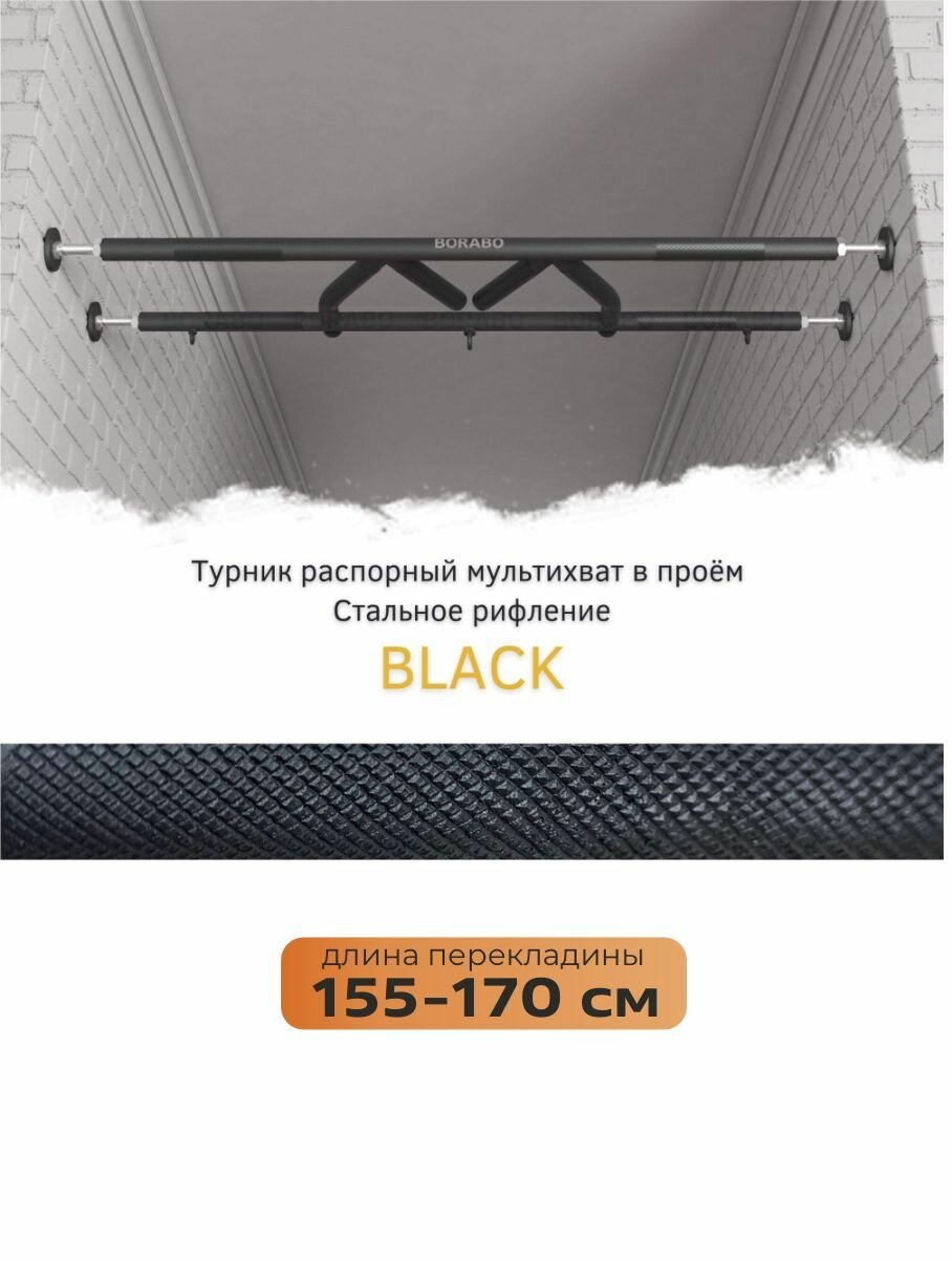 Турник распорный мультихват в проем BLACK - стальное рифление 155-170 см интересное: