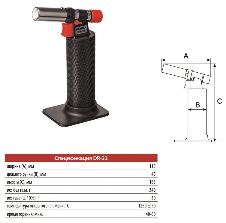 Газовая горелка-паяльник универсальная DAYREX DR30 интересное: