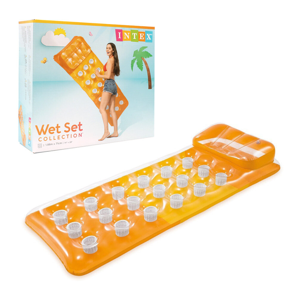 58890NP Intex Матрас надувной 18 стаканчиков, 188х71см оранжевый интересное: