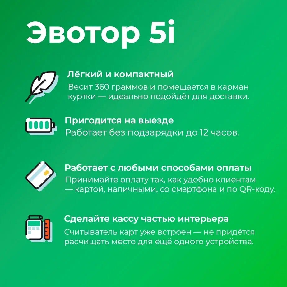 Ниже Вы можете прочитать отзывы на Смарт- терминал Эвотор 5i Smart POS без ФН, ознакомится с подробными характеристиками, посмотреть интересные обзоры и фотографии на Смарт- терминал Эвотор 5i Smart POS без ФН.