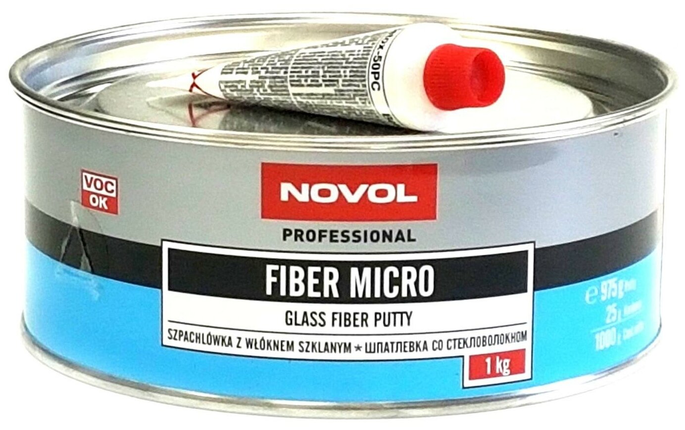 Шпатлевка автомобильная NOVOL FIBER MICRO Glass Fiber Putty со стекловолокном полиэфирная 1 кг