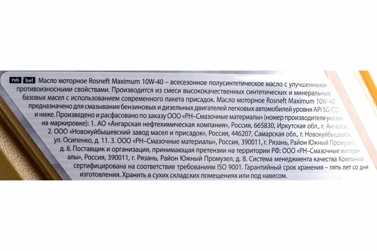 Полусинтетическое моторное масло Роснефть Maximum 10W-40, 5 л, 4.6 кг