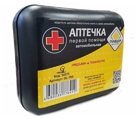Аптечка автомобильная Главдор GL-785 пластиковый футляр