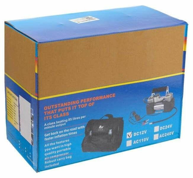 Компрессор автомобильный двухпоршневой в сумке, 12В, 85 л/мин, серебристый