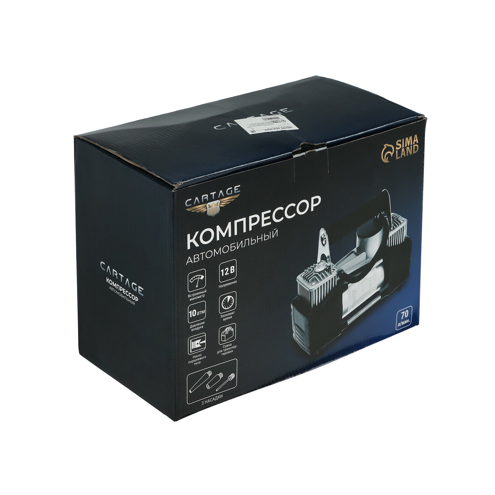 Компрессор автомобильный Cartage, двухпоршневой, 12В, 70 л/мин, серебристый