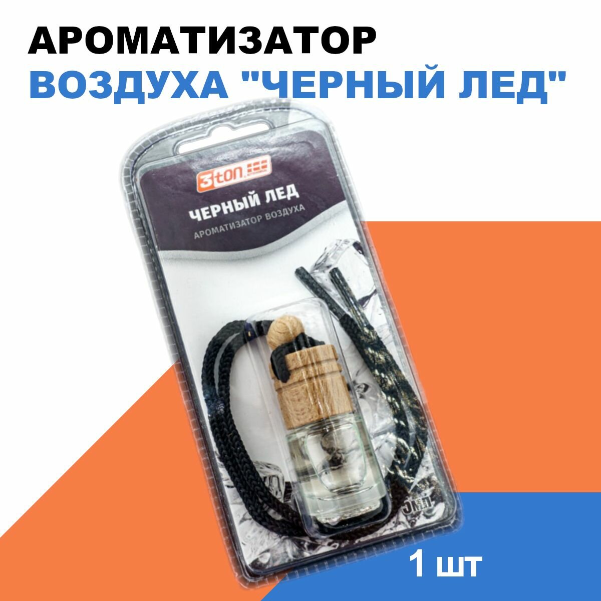 3TON 55293 Ароматизатор жидкий подвесной, с использованием экологически чистых материалов (натуральное дерево и стекло), черный лед