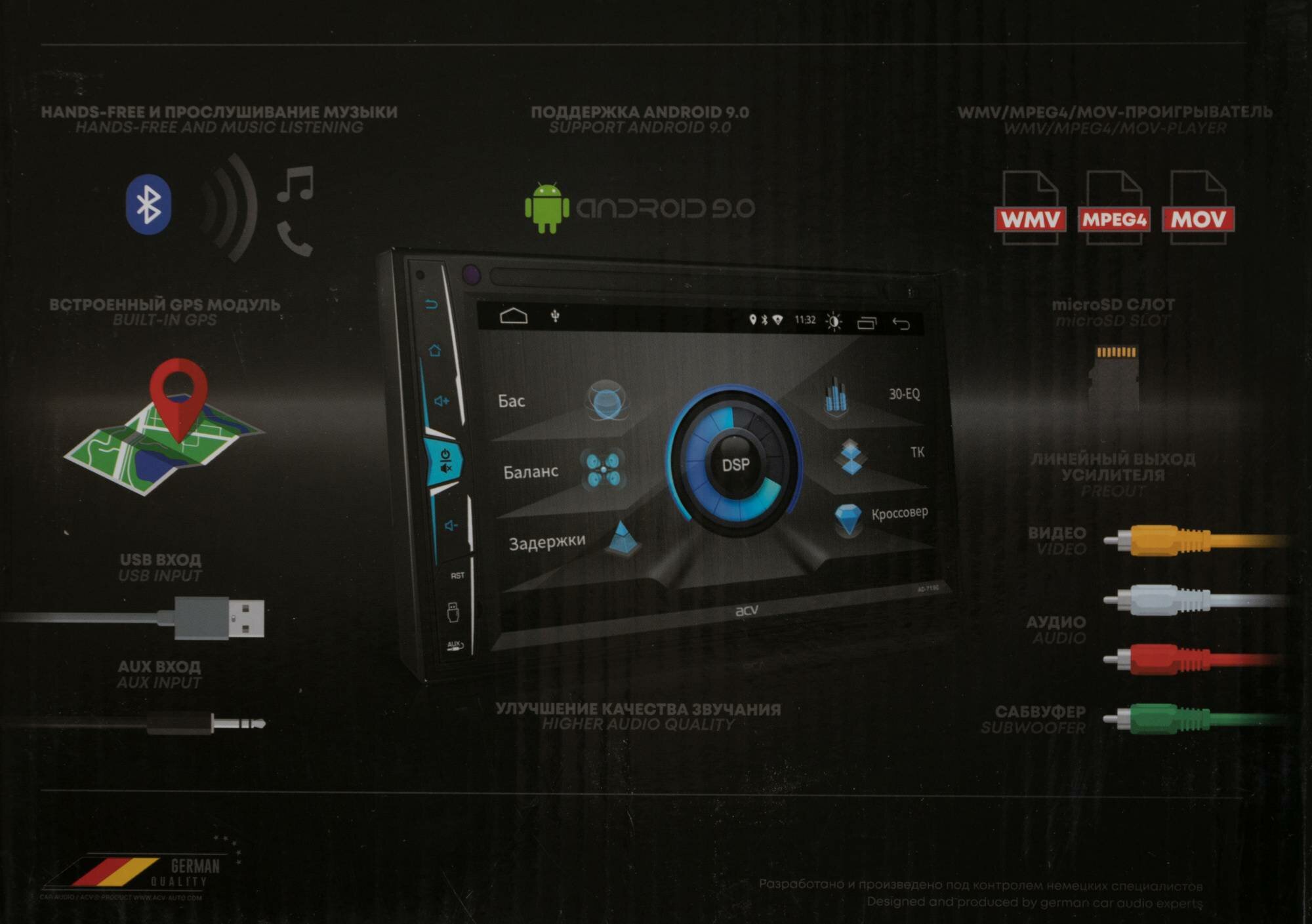 Автомагнитола ACV AD-7190, черный, RAM 2 ГБ