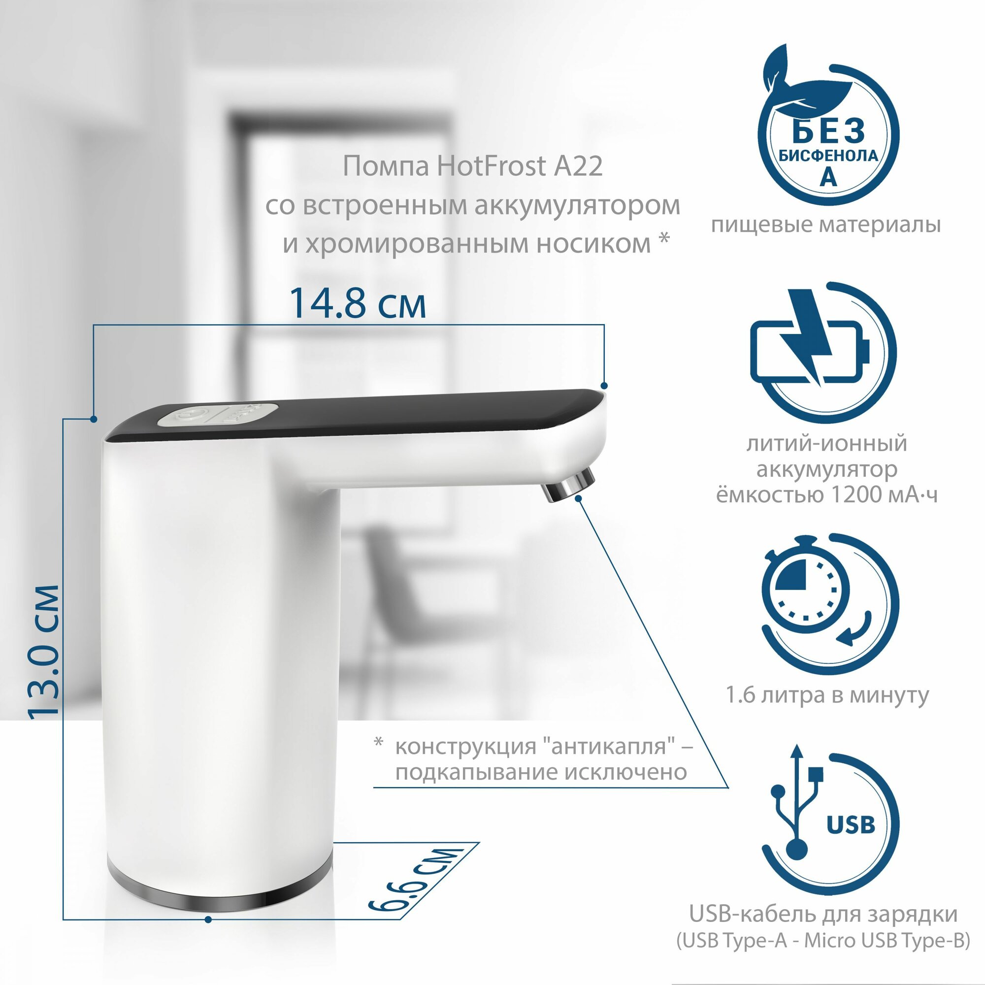 Помпа для 19л бутыли Hotfrost А10 электрический белый/синий