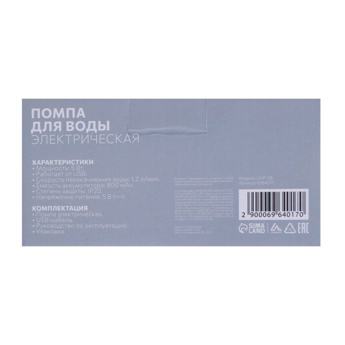 Купить Luazon Home Помпа для воды LuazON LWP-08, электрическая, 5 Вт, 1.2 л/мин, 800 мАч, АКБ