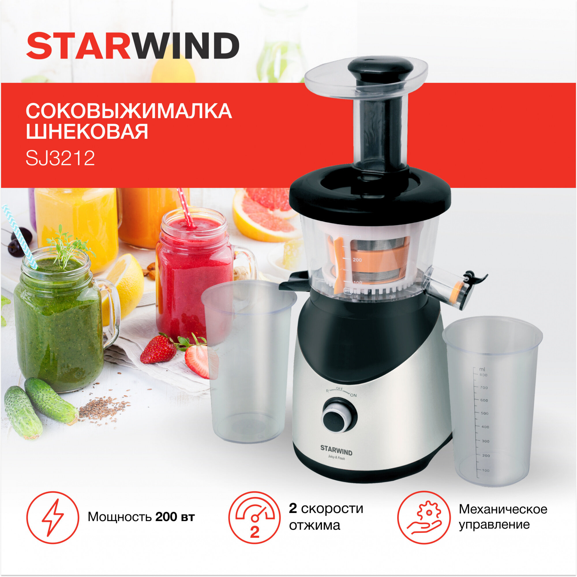 Шнековая соковыжималка Starwind SJ3212, 200 Вт