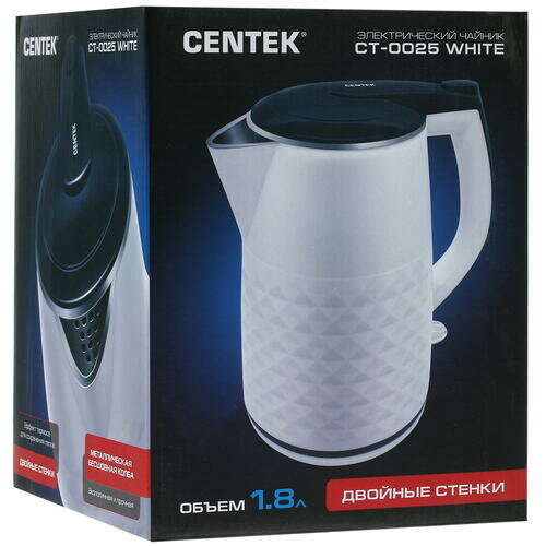 Чайник CENTEK CT-0025 двойные стенки белый
