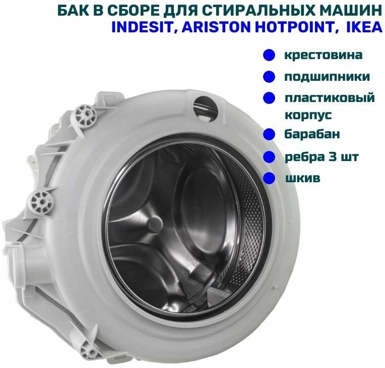 Бак в сборе (тяжелая механика) стиральной машины INDESIT, ARISTON, зам. C00145460, C00293409 C00109633 интересное: